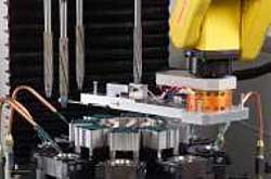 Various automation, autogaging, and autotool size compensation systems have been developed for the singlepass process, each designed to further reduce labor costs. Case history #8 illustrates one particular application in which the component manufacturer desired to have each finishing cell completely automated so that one operator could oversee a couple of cells at a time. Included in each cell are one singlepass bore finishing system; one O.D. grinding machine; one O.D. crowning machine; one automatic gage; and one robotic automation package. The automatic gage is set up to inspect bore size; O.D. size; face runout to the bore; and O.D. to bore concentricity. Information from these measurements is used to automatically adjust the grinding and bore finishing sizes when necessary. To automatically adjust the singlepass, bore finishing tooling, the robot first automatically changes its end of arm tooling and then proceeds to turn the front adjusting nut on each individual tool as needed. The robot then changes the end of arm tooling back to the grippers, loads a new part, and continues on with the automatic cycle.